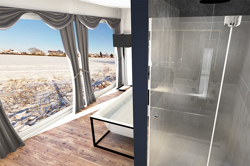 - VIGOUR individual Pendelttür für Nische, ESG klar, PflegePlusXtra, chrom, inkl. Aufmaß und Montage
